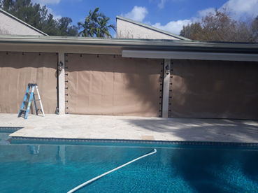 Our fabric shutters provide protection from pressurization of the house. When a window or door is cracked by air from a hurricane or the flying objects, they cause pressurization. Which can cause the roof to fly off the building, bringing objects into your house & making it unsafe.